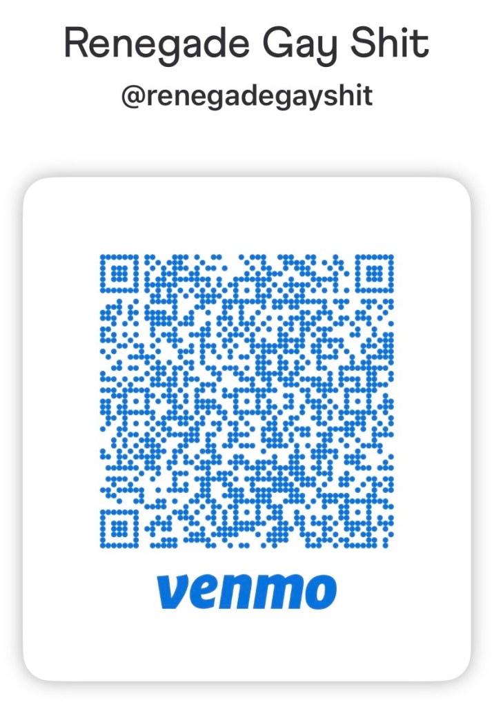 To purchase your ticket, send the appropriate amount via Venmo to @renegadegayshit. In the comment/memo field, please write “Ticket” or “# Tickets” if buying multiple so we can properly track your payment. Once your payment is received, your name will be added to the door list for entry.